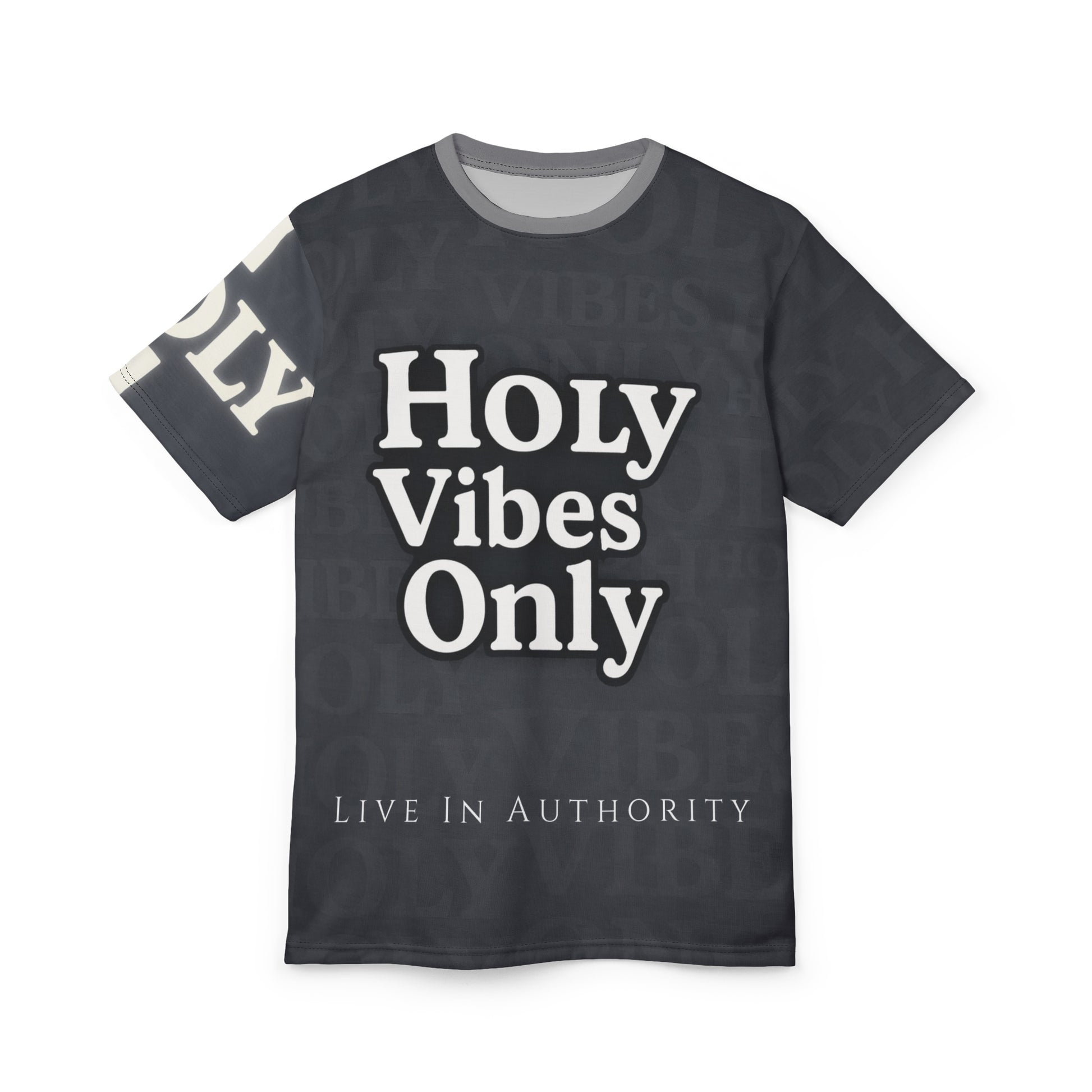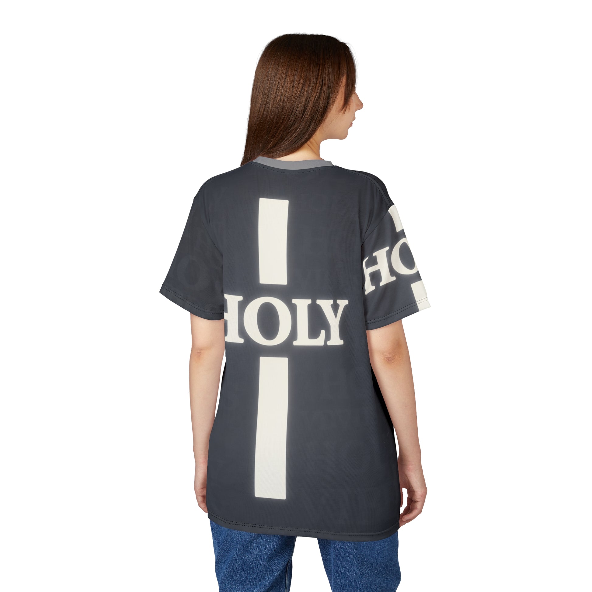 This unique Holy T-shirt serves as a reminder that only holy vibes are welcomed in and around this temple for the glory of God. A relaxed yet bright sight to see and wear in style and in freedom. It serves as a simple reminder that although we are not perfect, nor holy, by our own works it is through the finished work of the cross that we are made holy and perfected by God each day. It's relevant for Christians, church-goers, and everyday wear for those wanting to make a calm yet bold spiritual statement.